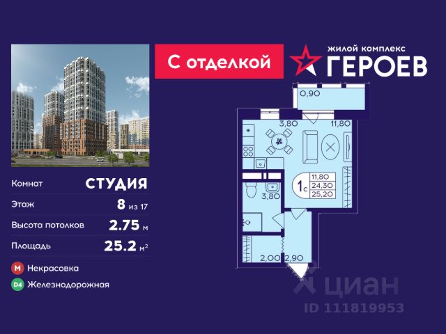 • ✓ В базе Циан 10 квартир-студий на 8 этаже рядом с метро Кучино