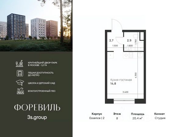 Строим кварталы для жизни с заботой о будущем. Предлагается студия комфорт-класса площадью 24,49 кв.м в корпусе 13 на 8-м этаже, в жилом комплексе "Эко Бунино". Застройщик сдает квартиры с отделкой в нескольких вариантах: предчистовая, готовая, улучшенная или вариант без нее. Последний подойдет тем, кто хочет создать свой уникальный интерьер и ничем себя не ограничивать. А если не хочется тратить время на ремонт, можно выбрать опцию — с отделкой. Перед тем как отдать ключи, застройщик установит натяжные потолки, поклеит обои под покраску, положит ламинат светлых тонов, а в санузлах — керамическую плитку и керамогранит. Приобрести квартиру возможно по специальным акциям от застройщика, с текущими условиями акций можно ознакомиться в блоке "Акций". Цена динамическая и может отличаться, уточняйте актуальность у застройщика. "Эко Бунино" — жилой комплекс в Новой Москве, полностью готовый для жизни. Уже построены школа и детские сады, открыты ледовая арена и магазины. Рядом — 2 станции метро и 3 лесопарка для прогулок. До станции метро "Новомосковская" — 20 минут пешком по экотропе. Во дворах-парках, закрытых от машин, комфортно и безопасно гулять. Здесь высажены уже взрослые деревья, которые создают прохладную тень в жаркий день. Ребенок любого возраста найдет увлекательное занятие в уже готовом плейхабе с большой горкой в виде слона и уникальным игровым оборудованием. Пока дети играют, родители могут прогуляться по бульвару или отдохнуть под навесом из растений. "Эко Бунино" — это 19 монолитных домов переменной этажности. Для облицовки используется навесной вентилируемый фасад и клинкерная плитка, которая имитирует кирпич. Переменная этажность обеспечивает хорошую инсоляцию дворов: в солнечные дни на территории особенно приятно гулять.