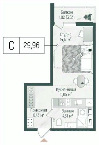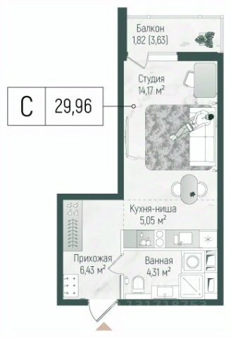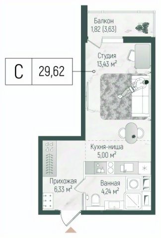 Продаётся студия 828, площадью 26,28 м², на 8 этаже в ЖК "Ильинойс" корпус 3. Стоимость — от 7079026 руб. Квартира без отделки, планировка односторонняя, окна во двор.