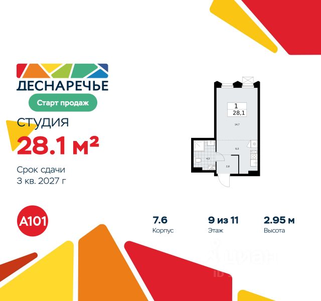 • ✓ В базе Циан 19 квартир-студий на 9 этаже в поселении Десёновское в Москве