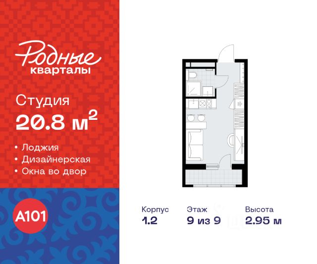 Продается студия 431 в новостройке Жилой район "Родные кварталы" по адресу Москва, ТиНАО, Новомосковский АО, Марушкинское С/П, жилой комплекс Родные Кварталы, 3.3, район Внуково, Новомосковский административный округ, Москва. Общая площадь квартиры - 20.70 кв. м., этаж 9 из 9, секция 9. Тип проекта, по которому построен дом - монолит, компания-застройщик - ООО "А101". Стоимость квартиры - 10270719 Р. Срок сдачи - 2 квартал 2026. ПРЕДЛОЖЕНИЯ ОТ ЗАСТРОЙЩИКА В ФЕВРАЛЕ 2026: Скидки до 10% на все квартиры. Только в офисах продаж до 28 февраля. Ипотека от 13,9 % для всех! На весь срок. "Семейная ипотека" вернулась. Ставка от 3,5 % на весь срок! Без удорожания! Выгодное ипотечное комбо: Ипотека от 2200 р./мес. и от 6 % после рождения ребёнка! Ипотека для всех "Держи пять!" - ставка 5 % на 2 года! *более подробную информацию по скидкам и акциям уточняйте в отделе продаж ЖК "Родные кварталы" строится в экологически благоприятной локации, рядом с парком Изварино и Ульяновским лесопарком. До станции метро "Аэропорт Внуково" и МЦД "Толстопальцево" - 15 мин. на транспорте. До Боровского, Киевского, Минского шоссе - 3, 6 и 20 минут соответственно Основная концепция благоустройства - воссоздание колорита разных регионов России. Этот же принцип использован в благоустройстве и озеленении района от бюро GAFA. Лесопарк, зоны отдыха, пешеходный бульвар со спуском в виде амфитеатра к набережной и центральной торговой площади, спортивные площадки. В шаговой доступности откроются детские сады и школа, поликлиника. На первых этажах домов - спортклубы, клиники, аптеки, супермаркеты, кафе и многое другое. Цветовые решения лобби также созвучны климатическим зонам России. Здесь появятся зоны ожидания с гостевыми санузлами и колясочными. Предусмотрены подземные паркинги и кладовые. Преимущества "Родных кварталов" - уютная атмосфера "малой родины" - полноценная инфраструктура внутри района - выезд на ключевые шоссе - от 3 минут на автомобиле - малоэтажная застройка