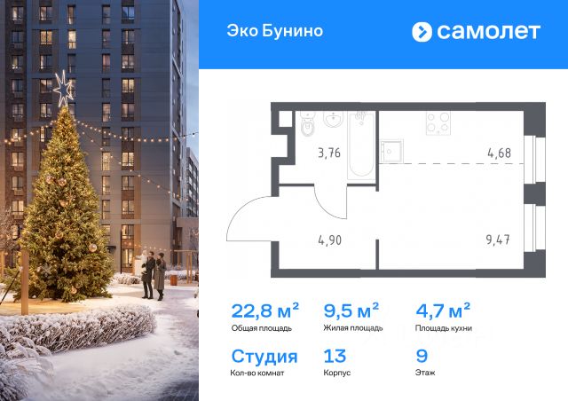 Продажа квартир-студий на 9 этаже рядом с метро Бунинская аллея
