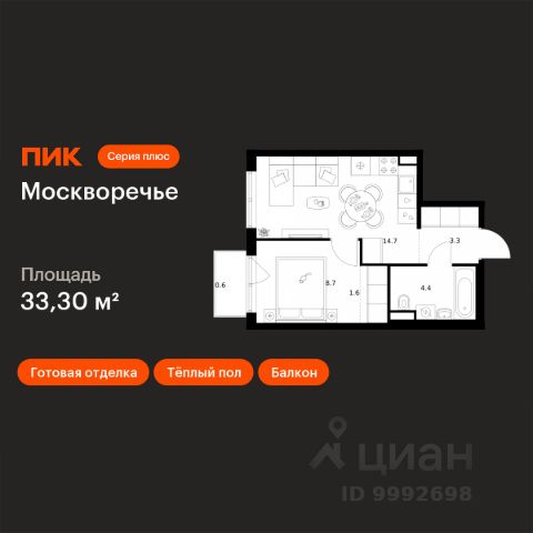 Продаётся квартира-студия площадью 34,7 кв.м на 9 этаже 29 этажного дома (Корпус 2.1, Секция 1) проекта ПИК Москворечье. Светлый просторный подъезд на уровне земли, функциональная планировка, большие окна, c отделкой. Архитектурный проект разработан российским бюро "Сага". Он представляет собой живую архитектурную среду, вдохновленную атмосферой исторических центров и разнообразием стилей. При этом каждый элемент разработан с вниманием к деталям и функциональности. Первая очередь, состоящая из четырех корпусов (1.1 - 1.4), запланирована к сдаче уже в 2027 году. Её общая площадь составит 103,3 тыс. м². Рядом с ней также появятся социальные объекты: образовательный центр, дошкольного и школьного образования на 3000 мест, включающий школу на 2500 мест, детские сады на 500 мест. Также на территории жилого квартала откроются два уютных детских сада, каждый на 350 мест и школа на 1350 мест. Кроме того, в "Москворечье" будет построена поликлиника, которую ежедневно смогут посещать до 450 пациентов. Внутри будет установлено современное оборудование для диагностики и профилактики. Также рядом будут созданы общественные пространства, технопарк, который обеспечит район новыми рабочими местами, досуговый центр, спортивные объекты и торговый центр. Все квартиры сдаются с готовой отделкой - заселиться можно сразу после получения ключей. В квартирах будет натяжной потолок, качественный ламинат, обои под покраску с лаконичной фактурой, межкомнатные и входные двери с дополнительной шумоизоляцией. Лобби выполнены в стиле современного минимализма. В отделке использованы долговечные материалы с выразительной фактурой: кирпич сочетается с мраморным бесшовным полом из наливного материала терраццо, гладкой плиткой и стеклом. Для автовладельцев будет доступен подземный паркинг. Особое внимание уделяется зоне первых этажей, где будет сформирована насыщенная городская среда. Здесь появятся общественные пространства, пешеходные галереи, коммерческие помещения и другие полезные сервисы для жителей. Точкой притяжения станет пешеходный бульвар, где будут расположены игровые площадки для детей разных возрастов и спортивные зоны. Квартал отличается хорошей транспортной доступностью. Ближайшие станции метро у жилого квартала "Москворечья" - "Каширская", "Кантемировская" и БКЛ "Варшавская", 1 минута на авто до ЮВХ, 15 минут до ТТК и МКАД. В 15 минутах от проекта парк культуры и отдыха "Долина реки Чертановка" и парк "Коломенское". До музея Царицыно, где регулярно проходят выставки и концерты - 20 минут на автомобиле. Артикул 1040813 (Застройщик ООО "СЗ ИМПУЛЬС")