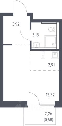 В продаже студия в корпусе 3.2 ЖК 'Егорово Парк'. Квартира располагается на 9 этаже, общая площадь 25.92 м2.