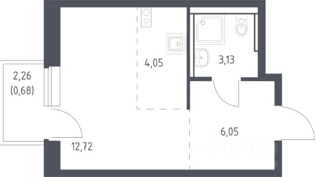 В продаже студия в корпусе 3.1 ЖК 'Егорово Парк'. Квартира располагается на 9 этаже, общая площадь 26.63 м2.