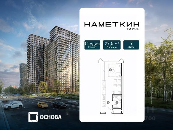 Продается студия площадью 24.2 кв.м. на 9-м этаже 29 этажного дома в "НАМЕТКИН ТАУЭР" от ГК ОСНОВА. Наметкин Тауэр - комплекс бизнес-класса с премиальным обслуживанием, располагается в районе Черёмушки на Юго-Западе Москвы. Архитектура — от известного бюро Mecanoo (Нидерланды). Комплекс включает 4 секции переменной этажности 2429 этажей и предлагает все преимущества бизнес-класса: двухуровневый подземный паркинг (2 этажа), панорамные окна и высокие потолки, дизайнерские лобби, продуманные общественные пространства, обширную собственную инфраструктуру - ресторан, супермаркет, медцентр и СПА. Уникальная особенность Наметкин Тауэр — небесный этаж: приватная досуговая зона для жителей на 25 этаже с выходом на террасы. Здесь будут доступны лаунж-зона, зона для спорта, площадка для детских игр, хобби-комната и зал для мероприятий. Также предусмотрены общественная гостиная с функциями коворкинга и бара, многоцелевой спортивный зал, теннисные и бильярдные столы. Исключительность приватных зон дополняют панорамные виды на Москву. В каждой секции запроектированы дизайнерские лобби, консьерж-сервисом 24/7, колясочными, комнатами для матери и ребёнка и гостевыми санузлами. Наметкин Тауэр находится вблизи 4-х станций метро в пешей доступности: 10-15 мин. до м.Новые Черемушки", м. "Воронцовская", м. "Калужская", м. "Зюзино". Рядом ведущие вузы Москвы, детские сады и школы. В окружении комплекса — Воронцовский парк, Битцевский лесопарк и Парк 70-летия Победы.