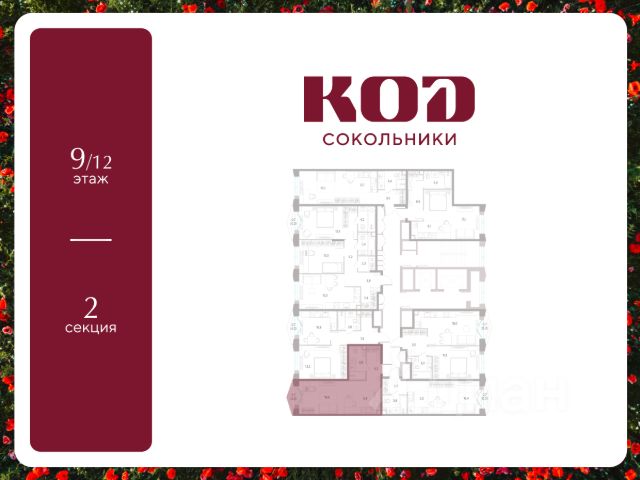В семейном жилом квартале, расположенном в окружении более 500 га леса и объектов исторического наследия, продается студия площадью 30.8 кв. м без отделки. Квартира расположена на 9 этаже 12-этажного корпуса 2.1 жилого квартала бизнес-класса КОД Сокольники от девелопера Новая Эра.