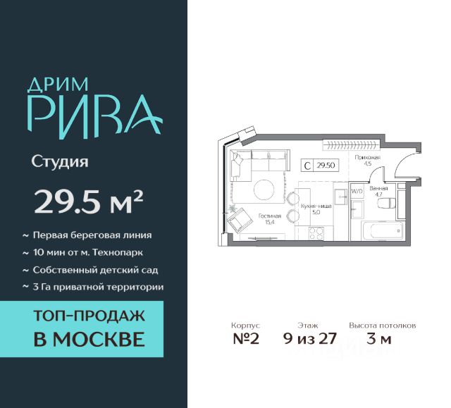 Ощущение курорта на побережье, где каждая деталь призвана доставлять исключительный комфорт и радость. Прибрежный квартал Dream Riva — настоящее воплощение магической атмосферы. Полностью готовая инфраструктура престижного курорта "Остров мечты" в самом сердце Москвы на первой береговой линии. Всё, что нужно для размеренной жизни, работы, отдыха и развлечений. Начните жить в удовольствие здесь. Новая реальность Жить в Dream Riva — значит, осуществить мечту никуда не спешить и планировать свои будни так, как хочется. Преимущества, так щедро собранные в уникальной локации Острова мечты, подарят жителям роскошь личного курорта, наполняя дни самыми счастливыми впечатлениями. Уединённая и обособленная локация с невероятным парковым и ландшафтным массивом в 44 Га для прогулок, спорта, пикников и незабываемых вечеров с близкими. Комплексная готовая инфраструктура для развлечения, отдыха, шопинга и работы. Ежедневно открывать для себя что-то новое и при этом оставаться рядом с домом. Первая линия Москвы-реки с открытыми видами на воду и город. Благоустроенная набережная с гастропроменадом, которая станет частью городского прогулочного маршрута и соединит локацию с другими развлечениями столицы. Авторская архитектура в курортной концепции, воплощающей силу природных стихий в каждой детали оформления и благоустройства. Собственный приватный прибрежный парк размером 3 Га возле дома с зонами для спорта и йоги, открытым солярием вдоль береговой линии, многофункциональными детскими игровыми комплексами, местами для релакса, прогулок и времяпрепровождения всей семьей. Формат приватного досуга и эксклюзивные привилегии — клубная гостиная, детское кафе с игровой комнатой, lounge-бар, гостиничный премиальный сервис и приоритетный доступ к развлечениям — только для резидентов. Квартиры с разнообразным выбором планировок — для свободных людей и больших семей с детьми. Квартиры с опцией без отделки для воплощений смелых проектов и с дизайнерским интерьером для тех, кто готов уже завтра праздновать новоселье. Современные инженерные технологии квартала, которые сделают жизнь ещё удобнее и задают стандарт максимального комфорта.