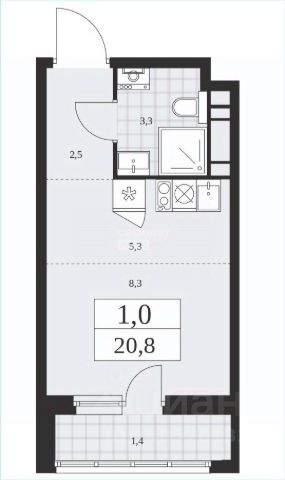 Продаю квартиру-студию. По Росреестру площадь 28,2 м2, складывается из: