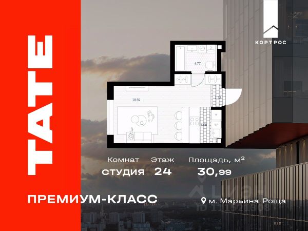 TATE - премиальный жилой комплекс, вдохновленный эстетикой современного искусства. Две башни TATE - образцы архитектурного минимализма, триумф функциональной простоты и отсутствия вычурности. Трехуровневое благоустройство от авторов столичного "Музеона", SPA и фитнес только для резидентов, а также панорамный лаунж на высоте 140 метров, откуда открывается впечатляющий вид на вечернюю Москву. Важной особенностью проекта является продуманная инфраструктура. На территории TATE будут расположены кафе и рестораны, где ранним утром можно насладиться горячей чашечкой кофе, а вечер провести за ужином в тихой расслабляющей атмосфере на открытой веранде. После рабочего дня непременно стоит расслабиться в SPA, расположенном на территории ЖК. Для любителей спорта предусмотрен фитнес-центр с бассейном. Для тех, кто ценит искусство на территории ЖК будет действовать арт пространство со сменной экспозицией и лаунж с панорамным видом на 39 этаже. Внутренний двор превращен в тихое зеленое пространство с арт-объектами, прогулочными аллеями и уютными зонами отдыха. Здесь приятно проводить время с семьей, встречать друзей и просто наслаждаться состоянием покоя. TATE - это новый уровень жизни рядом с ЦАО: • 5 минут пешком до метро Марьина роща; • 15 минут пешком до парков "Сокольники"и "Останкино"; • Сады и школы в шаговой доступности; • 10-15 минут на автомобиле до центра Москвы и Цветного бульвара, 20 минут до Москва-Сити. Архитектура, комфорт и вдохновение - все, чтобы каждый Ваш день начинался красиво. Продам квартиру-студию в ипотеку рядом с метро Бутырская.