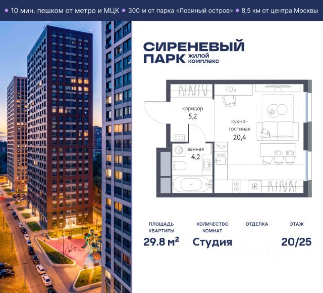 Продаётся просторная студия общей площадью 30.5 м² на 4 этаже в новом жилом комплексе "Сиреневый парк", расположенном в Восточном административном округе Москвы на улице Тагильская. Всего 10 минут ходьбы от станции метро "Бульвар Рокоссовского" и одноимённой платформы МЦК. Высококачественное монолитное строительство гарантирует сохранение тепла в доме, а наличие квартир с предчистовой и чистовой отделкой позволяет вам сэкономить время и сразу же переехать в свое жилье после покупки. Благодаря разнообразию планировок вы сможете выбрать идеальный вариант, соответствующий вашим предпочтениям и образу жизни. Предлагаются квартиры: - с просторными кухнями-гостиными, - с нишами для хранения вещей и отдельными гардеробными, - мастер-спальни с собственными санузлами, - большие комнаты с высокими потолками (2,9 м) и с увеличенными безопасными окнами (1,95 м) , которые наполнят ваш дом естественным светом; - с чистовой отделкой по двум дизайн-проектам на выбор; - с остекленными лоджиями и панорамными видами на лес. Каждая деталь в этом доме создана для вашего комфорта: - безбарьерная среда, - бесшумные скоростные лифты, - машиноместа в отапливаемом подземном паркинге и кладовые на -1 этаже с доступом из лифта, - развитая инфраструктура с супермаркетами, кафе, фитнес-клубами, салонами красоты и частным детским садом обеспечивает максимальное удобство жителям. В 300 метрах от ЖК расположен Национальный парк "Лосиный остров". Способы покупки: 100%, Trade-in, Семейная ипотека без наценки, стандартная ипотека. Запишитесь на просмотр в офис продаж и получите свою персональную скидку по акции Назови свою скидку. ЖК "Сиреневый парк" — гармония в деталях, совершенство в каждом моменте. Застройщик проекта - AFI Development. Купить квартиру-студию в ипотеку рядом с метро Партизанская.