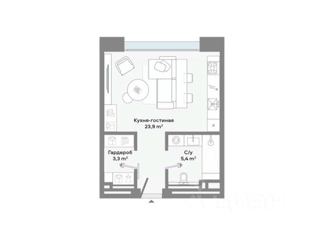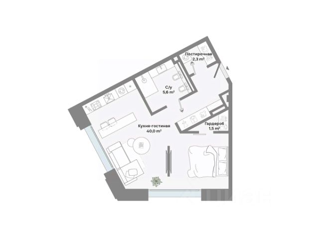 СПАЛЬНЯ-ГОСТИНАЯ 31,37 м²: