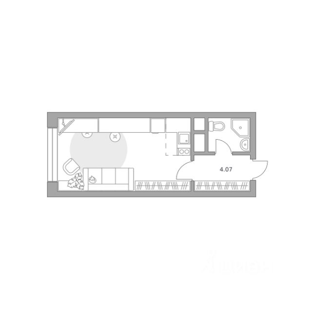 Продаётся студия 24, площадью 23,72 м², на 4 этаже в ЖК "Пехра" корпус 8. Стоимость — от 4969127 руб. Квартира без отделки, планировка односторонняя, окна во двор.