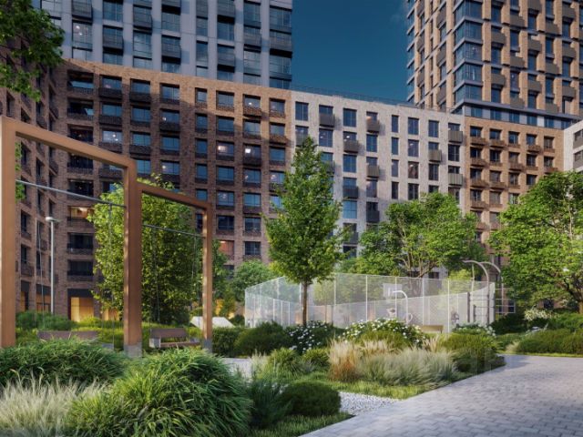 Особое внимание уделяется зоне первых этажей, где будет сформирована насыщенная городская среда. Здесь появятся общественные пространства, пешеходные галереи, коммерческие помещения и другие полезные сервисы для жителей. Точкой притяжения станет пешеходный бульвар, где будут расположены игровые площадки для детей разных возрастов и спортивные зоны.