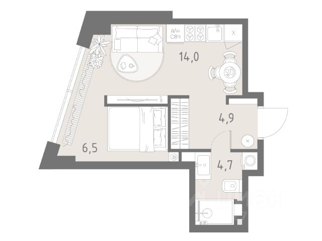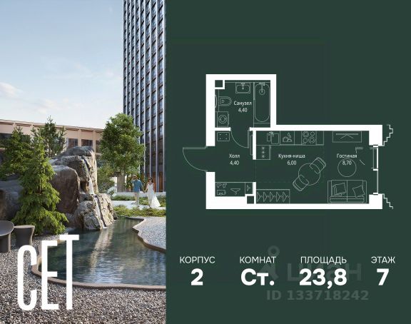 Прямая продажа от застройщика. Продаётся студия общей площадью 20.50 м² с предчистовой отделкой в ЖК Веер на 7-м этаже 46 этажного дома. Жилой комплекс бизнес-класса Веер от компании MR — это футуристичный мультиквартал, расположенный в престижной локации на западе Москвы. Благодаря переменной высоте башен — двух 22-этажных, 46-этажной и двух 59-этажных — возникает динамичность в силуэте комплекса, а его яркий образ вносит разноплановость в архитектурный пейзаж района. Расположение и транспортная доступность: • Веер удобно расположен в непосредственной близости от Кутузовского проспекта, обеспечивая быстрый доступ к центральным районам Москвы • Комплекс находится непосредственно напротив самого большого природного заказника в Москве - парка "Долина реки Сетунь", а за семь минут можно доехать до памятника садово-паркового искусства, Троекуровского леса. • Всего в 15 минутах - центр города, самая престижная бизнес-школа управления России "Сколково", дом творчества "Переделкино". Инфраструктура: Разнообразить свой день резиденты Веер смогут также проводя больше времени на свежем воздухе. Двор разделен на 4 зоны разных эмоций и действий, которые пересечены и соединены веерными прогулочными маршрутами: • Спортивная площадка устроена в глубине "Кленовой рощи" • В "Чайном домике" будет создан навес с утеплением для отдыха в любую погоду • Площадки для детей воплотятся в "Волшебный лес" с цветами, зеркалами и световым дизайном • "Центральная площадь" устроена у водного оазиса живописного пруда. Компания MR предлагает своим клиентам специальные условия приобретения квартир в рамках программ ипотечного кредитования от банков-партнеров. Квартира-студия в ипотеку в районе Можайский в Москве.