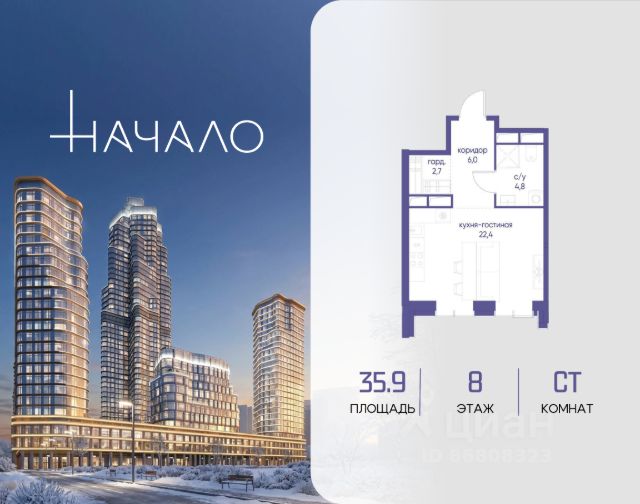 Старт продаж! Квартиры в Москва-Сити в самой инновационной башне Оне. В продаже студия площадью 34.80 м² на 40-м этаже. Новый современный жилой комплекс премиум-класса Оне расположен в самом сердце деловой жизни столицы — в Москва-Сити, где захватывающая дух архитектура встречается с безупречным уровнем комфорта. Оне находится в Пресненском районе, в пешей доступности от станции метро "Деловой центр". Проект был разработан выдающимся архитектором Сергеем Кузнецовым при участии международного бюро Gensler. Уникальная скульптурная форма башни, вдохновленная лентой Мебиуса, создает новый узнаваемый силуэт делового центра и задает непревзойденный стандарт вертикальной жизни. По замыслу архитекторов, жилой комплекс представляет собой две вертикальные башни, соединенные в нижней и верхней точках. На 85 этаже расположен Sky Garden — самый высокий в Европе парк с оазисом природы и секретным садом в облаках, а на 83 этаже парит стеклянный мост Sky Bridge с панорамными видами. Важнейшей особенностью комплекса является его всесторонняя инфраструктура по принципу All-in-Оне: закрытый Клуб с лаунжами, приватным кинотеатром, бильярдной, рабочими зонами и фитнесом. Здесь же расположена торговая галерея бутиков и премиальный гастро-кластер, концепцию которого разработал известный ресторатор Александр Сысоев. Особенности комплекса: - Эксклюзивная архитектура от главного архитектора Москвы - Самый высокий в Европе небесный сад Sky Garden на 85 этаже - Панорамное остекление от пола до потолка во всех квартирах - Smart-инженерия и сервис уровня пятизвездочного отеля - Приватная Клубная инфраструктура All-in-Оне - Трехуровневый паркинг с зарядными станциями для электрокаров - Круглосуточная безопасность и консьерж-сервис Расположение комплекса: - Пешая доступность от станции метро "Деловой центр" - 2 минуты до Экспоцентра - 5 минут до Дома Правительства - 7 минут до Кутузовского проспекта Продам квартиру-студию в ипотеку в районе Пресненский в Москве.