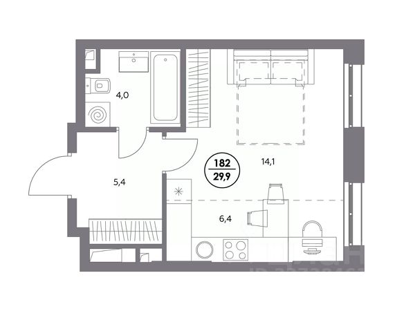 Продаётся студия 269, площадью 29,29 м², на 22 этаже в ЖК "Дубровка от Гранель" корпус 2. Стоимость — от 15487258 руб. Квартира без отделки, планировка односторонняя, окна на улицу.