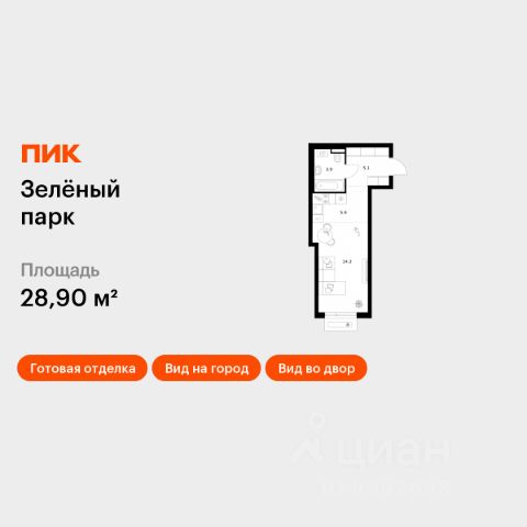 Продаётся квартира-студия площадью 28 кв.м на 2 этаже 21 этажного дома (Корпус 5.2, Секция 1) проекта ПИК Зелёный парк. Светлый просторный подъезд на уровне земли, функциональная планировка, большие окна, c отделкой. Большой квартал с оригинальной архитектурой в обжитом районе Зеленограда. От него до станции МЦД-3 "Зеленоград-Крюково" — 20 минут пешком, до Кутузовского шоссе можно доехать на машине за 3 минуты, а до Пятницкого шоссе — за 5 минут. Характер "Зелёного парка" отражён в архитектуре. Квартал состоит из уютных разноэтажных блоков с оригинальными акцентами. Цветовая палитра проекта спокойная и сдержанная: оттенки белого и коричневого сочетаются с пастельным розовым и мятным. В проекте запланированы также два детских сада, две школы и паркинг. На первых этажах откроются магазины, кафе и другие сервисы — чтобы купить кофе и свежий хлеб к завтраку, можно будет просто спуститься на лифте. В уютных дворах-парках появятся места для отдыха, детские площадки, кофейни и зоны отдыха. Рядом — Зеленоградский лес, Парк Победы и Михайловский пруд, где можно гулять и заниматься спортом. У жителей "Зелёного парка" будет возможность получить московскую прописку. Для любителей спорта в 10 минутах пешком от квартала — велодром с BMX-трассой, физкультурно-оздоровительный комплекс Горизонт, а также лыжероллерная трасса длиной около 3 км. Артикул 1030732 (Застройщик АО "СПЕЦИАЛИЗИРОВАННЫЙ ЗАСТРОЙЩИК "ЗЕЛЕНОГРАДСКИЙ")