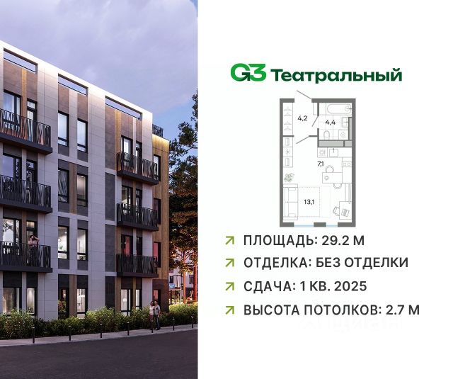 • ✓ В базе Циан 13 квартир-студий в кирпично-монолитном доме в поселке городского типа Ильинский Московской области