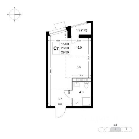 В ЖК "Легенда Марусино" продаётся студия -к квартира 23.3 кв. м, расположенная на 4 -м этаже 7 -этажного дома.