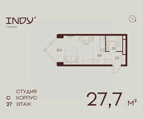 Продажа от застройщика. Продается просторная студия на 16 этаже жилого комплекса Indy Towers. Вид из окон: во двор. Срок сдачи: 4 кв. 2026 г. Отделка: Квартиры продаются с отделкой WhiteBox. - Вам не придется заниматься черновыми работами. - Возможность реализовать любой дизайн-проект. Расположение: Комплекс расположен в Хорошевском районе Москвы, на улице Куусенина, в окружении почти 150 гектаров парков для прогулок и активного отдыха. Помимо этого, рядом с комплексом есть: - Детская международная академия тенниса - Ледовый спортивный комплекс ЦСКА - Футбольный стадион "ВЭБ-Арена" - Крупнейший в Европе торовый центр "Авиапарк" - Богатый выбор государственных и частных школ - 8 парков, окружающих комплекс Транспортная доступность: - 3 минут до метро Зорге - 2 минуты пешком до парка Березовая роща - 10 минут на машине до ТТК - 8 минут на машине до ТРЦ Авиапарк Внутренняя инфраструктура Indy Towers: - Кафе и продуктовые магазины - Тайский SPA - Фитнес зал - Комьюнити-зона - Детский клуб Аквилон KIDS - Детский сад Преимущества: - Технология энергоэффективности Termo-S, снижающая теплопотерю домов и позволяющую экономить на электроснабжении - Soundstop - технология дополнительной шумоизоляции на 39 дБ в квартирах с WhiteBox и чистовой отделкой - Система умного дома inHome 3.0 позволит контролировать коммунальные расходы, оплачивать счета и пользоваться услугами, не выходя из умного дома