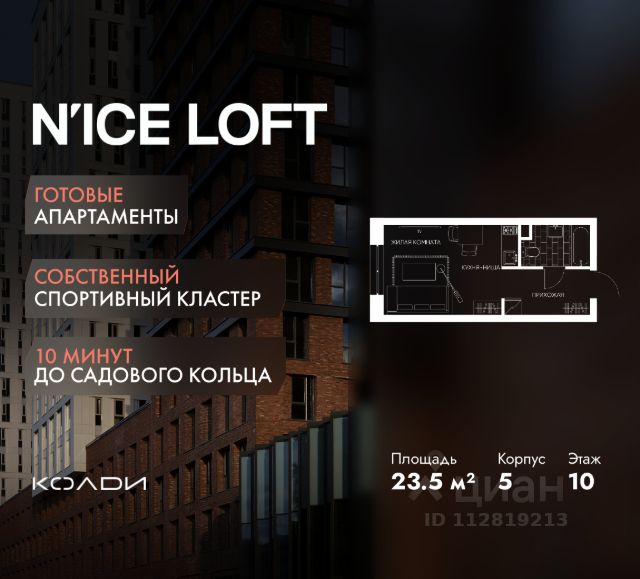 N'ICE LOFT — готовый комплекс апартаментов с собственным спортивным кластером в 10 минутах от Садового кольца. Комплекс апартаментов бизнес-класса N'ICE LOFT, девелопером которого выступила компания КОЛДИ, представляет собой знаковое жилое пространство, на территории которого органично объединены высококачественная инфраструктура для комфортной жизни и полноценный спортивный кластер. N'ICE LOFT — новая спортивная доминанта Москвы, где для жителей и их гостей предусмотрено более 20 000 м², созданных специально для тренировок, игр, восстановления и оздоровления. Автором выразительной городской эстетики выступило архитектурное бюро APEX. Строгие силуэты фасадов эффектно возвышаются над благоустроенным окружением, а световые блики элегантно подчеркивают структурное фасадное остекление. Сердце проекта — физкультурно-оздоровительный комплекс с двумя ледовыми аренами формата НХЛ — профессиональными площадками. Помимо спортивных арен на территории N'ICE LOFT предусмотрено пять многофункциональных залов, где каждый сможет реализовать свой спортивный потенциал. Для тех, кто предпочитает тренировки и прогулки на свежем воздухе, создан спортивный парк общей площадью 6 300 м² с воркаут-зонами, игровыми площадками и уединенными пространствами для отдыха. Также внутри квартала проложена километровая беговая дорожка, которая доступна к использованию в любое время года. Особое внимание архитекторы уделили входной группе — просторное авторское лобби с потолками до 9 метров с использованием природных элементов. Резиденты и их гости смогут насладиться садом, не покидая пределы дома. Территория апарт-комплекса N'ICE LOFT соответствует современным стандартам безопасности: инновационная система видеонаблюдения, охраняемый подземный паркинг и круглосуточный консьерж-сервис. Преимущества N'ICE LOFT: Готовый комплекс с собственным спортивным кластером в 10 минутах от Садового кольца Современная архитектура с выразительными контрастными фасадами Спортивная инфраструктура 20 000 м²: 2 ледовые арены формата НХЛ, 5 многофункциональных залов, беговая дорожка 1 км Спортивный парк 6 300 м² с зонами для разных видов активностей Более 10 видов спорта в одном кластере Апартаменты с панорамными окнами и потолками до 5 метров Видовые лоты с террасами и патио Авторское лобби с потолками до 9 метров Консьерж-сервис 24/7 Охраняемый подземный паркинг Купить квартиру-студию в стиле loft в Москве.