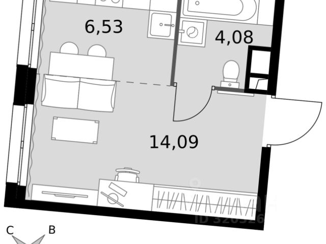 Раздельный санузел, три полноценные комнаты, кухня-ниша (5,53 кв. м.)