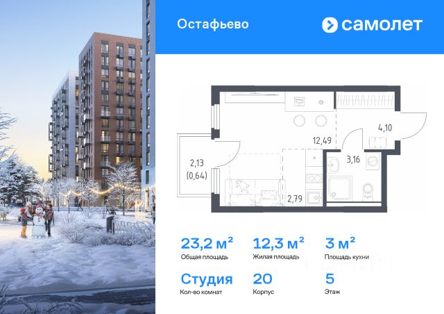 Строим кварталы для жизни с заботой о будущем. Предлагается квартира студия комфорт-класса 22,54 кв.м в корпусе 21 на 4 этаже, в ЖК "Остафьево" Квартира без отделки. Доступность опции "отделка" и возможность комплектации мебелью и декором уточняйте у застройщика. Приобрести квартиру возможно по специальным акциям от застройщика, с текущими условиями акций можно ознакомиться в блоке "Акций". Цена динамическая и может отличаться, уточняйте актуальность у застройщика. "Остафьево" — масштабный жилой комплекс в Новой Москве, рядом с одноименным музеем-усадьбой и городским парком "Барыши". До станций МЦД "Щербинка" и "Остафьево" можно добраться на автомобиле за 57 минут. Часть домов уже сдана, на территории открыты две школы и три детских сада, а в будущем будет построена поликлиника, ТЦ, еще одна школа и три детских сада. Все необходимое рядом: на первых этажах домов работают магазины, аптеки и кафе. Дворы — приватные мини-парки без машин и посторонних. Кроме игровых площадок, для детей обустроили тематический плейхаб "Маяк". В будущем появятся плейхаб "Алиса в стране чудес", арт-объект "Тропа зеркал", а также большой ландшафтный парк. В квартале — монолитные дома комфортной высоты, от 10 этажей. Светлые фасады украшают кирпичные вставки в теплых природных оттенках.