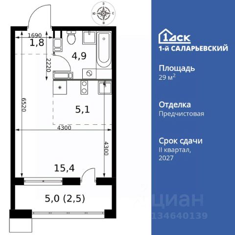 УСПЕЙ ПО СЕМЕЙНОЙ ИПОТЕКЕ БЕЗ НАЦЕНКИ! От 36 000 рублей в месяц! Прямая продажа от застройщика! Жилой Комплекс класса Комфорт+. Продаётся квартира-студия номер 123 общей площадью 30.3 кв.м. на 13-м этаже 25 этажного здания. Отделка Whitebox. Цена с учётом скидки. Особенности квартиры: - Линейная планировка - максимальная функциональность и удобство. - Увеличенное количество окон - дополнительное освещение и свежий воздух. - Гибкая планировка - создайте пространство по своему вкусу. - Можно оборудовать рабочее место - комфорт для работы и учёбы. - Линейная кухня - функциональность и практичность в одном решении. - Лоджия - уютное место для отдыха и тишины. - Просторная лоджия - идеальное место для уютных вечеров. - Панорамное остекление лоджии - открывает вид на окружающий мир. Квартира с предчистовой отделкой (White box). Вам не придется заниматься черновыми и трудоёмкими работы, а чистовую отделку и дизайн - сделайте на свой вкус. Информация о комплексе: Весь микрорайон спроектирован в концепции "без машин". Пейзаж не портят припаркованные автомобили, а родители могут не опасаться за перемещение детей по всему кварталу. Территория комплекса - царство пешеходов. А что делать, если Вы или Вам подвезли чтото габаритное? Проблему решают сквозные подъезды, открывающие доступ в здание с внешней стороны комплекса. Проезд к домам организован по внешнему контуру микрорайона. Места для автомобилей отведены на 7 этажах наземного паркинга и в подземном паркинге 6-го корпуса. За порядком и безопасностью зорко следит множество камер. Безбарьерная среда облегчает передвижение по территории молодых родителей с колясками, маленьких детей и жильцов с ограниченными возможностями. Транспортная доступность: "1-й Саларьевский" расположен в Новой Москве всего в 2 км от МКАД и 5 минутах ходьбы от метро Саларьево. Если Вы за рулем, для Вас удобный выезд на скоростное Киевское шоссе. Передвигаетесь не на автомобиле? Станция метро Саларьево и автовокзал в пешей доступности. У метро находится один из крупнейших ТЦ Новой Москвы "Саларис". Это значит, что всевозможные покупки и разнообразные развлечения для всей семьи тоже рядом. Личный автотранспорт: До Киевского шоссе - 0,2 км До МКАД - 2,4 км До Калужского шоссе - 5 км До Ленинского проспекта - 3,2 км Общественный транспорт: До станции метро "Саларьево" - 7 мин пешком До остановок наземного транспорта - 5-10 мин пешком До Ленинского проспекта на автобусе - 10 мин Внутренняя инфраструктура: Во дворе царит атмосфера легкого беззаботного настроения. По сторонам расположились любимые местными жителями магазинчики, где можно купить товары первой необходимости, кафе, где приятно посидеть с друзьями, и кофе-пойнты. На бульваре можно посмотреть уличную выставку, поиграть с соседями в шахматы и покачаться на световых качелях. Дети растут быстро, и вот уже возникает вопрос садика. На территории есть свой современный садик на 225 мест. Из садика ребенок плавно переходит в сво