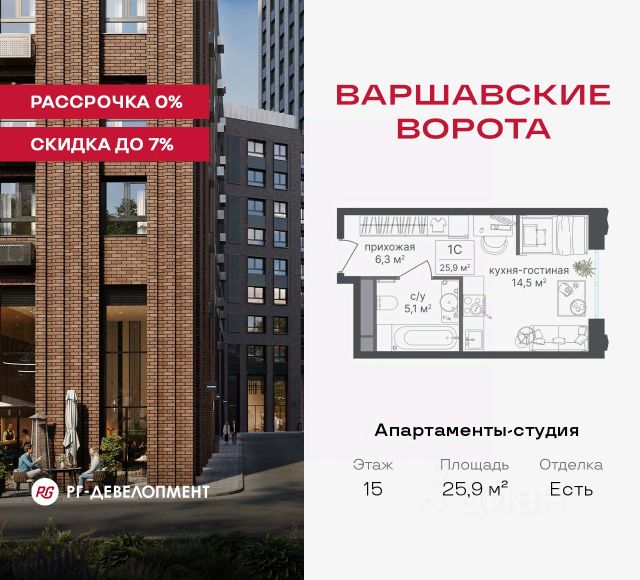 Рассрочка 0% + скидка 5%. Первый платёж 50% при ДДУ, второй 50% — через 12 мес. до ввода ЖК. Продаются Апартаменты-студия 29,6 кв.м. в МФК "Варшавские ворота" на 3-м этаже 30 этажного дома. МФК "Варшавские ворота" — это проект, в котором учтен широкий спектр требований: от транспортной доступности и развитой инфраструктуры до архитектурной выразительности и экологического окружения. Апартаменты в МФК "Варшавские ворота" подойдут для тех, кто ищет продуманное жилье в Москве или готовый инвестиционный актив. Апартаменты здесь — это: - возможность жить комфортно в удобном городском формате — с природой, метро, сервисом и паркингом; - возможность купить лот с готовой отделкой, чтобы вложить минимальные инвестиции в ремонт и получить максимум возможностей от сдачи; - экономия на налоге на имущество, кадастровая стоимость апартаментов ниже ~ на 30% кадастровой стоимости квартиры; - высокая инвестиционная доходность объекта за счет более низкой цены покупки по сравнению с квартирой. Коротко о важном: - 1 минута пешком от м. Аннино; - Удобные выезды на Варшавское шоссе и МКАД; - Вид из окон на Битцевский лес и Аннинский лесопарк; - Высота потолков 2,7 - 3 м; - Закрытый двор-парк; - Школы и детские сады в 10-15 минутах пешком от дома; - Технические лоджии для размещения кондиционеров; - Подземный паркинг; - РГ-Девелопмент — ТОП-20 крупнейших застройщиков России. Проект сочетает в себе современную архитектуру и продуманное благоустройство с уникальным природным окружением. Всего в нескольких минутах от дома — девять парков, каскад прудов и крупнейшие лесопарковые зоны Москвы, создающие ощущение жизни в зеленом оазисе посреди мегаполиса. Архитектурная концепция - стиль Чикаго в Москве. Выполнена в минималистичной эстетике с использованием клинкера и декоративного кирпича. Фасады подчеркивают строгие линии и современный стиль, а входные группы разработаны московским бюро Syntaxis. Лобби оформлены с применением керамогранита, декоративной штукатурки и гипсовых панелей, детали из латуни добавляют изысканности. Пространство оживляют гербарии, композиции из сухоцветов и авторские панно. Проект находится в одной минуте пешком от метро "Аннино", в 12 минутах от станции "Улица Академика Янгеля" и рядом с МЦД-2 "Красный Строитель". Для автомобилистов предусмотрен прямой выезд на Варшавское шоссе и два съезда на МКАД, что позволяет быстро добираться в любую часть города. Среди планировочных решений представлены разнообразные форматы: от функциональных студий до просторных 4-комнатных квартир и апартаментов площадью от 22 до 105 м². Высокие потолки усиливают ощущение простора, а продуманные планировки включают мастер-спальни, гардеробные, угловые окна, объединённые кухни-гостиные и несколько санузлов. Центральное пространство комплекса — закрытый двор без машин. Он разделён на функциональные зоны: детские игровые комплексы, спортивные площадки, воркаут-зоны и уютные места для тихого отдыха. На первых этажах разместятся Квартира-студия в районе Чертаново Южное в Москве.