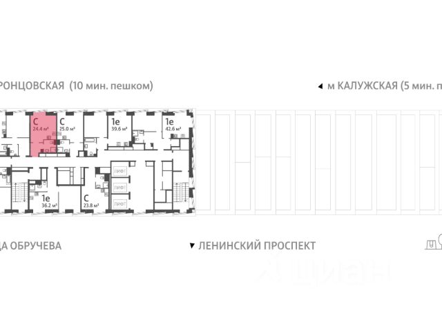 Продается квартира-студия общей площадью 23.6 кв. метров на 42 этаже дома бизнес-класса "Обручева 30". Дом располагается в 5 минутах ходьбы до станции метро "Калужская" и 10 минутах до станции метро "Воронцовская". Для автомобилистов удобный и быстрый выезд на улицы Обручева и Профсоюзную. Дом бизнес-класса "Обручева 30" представляет собой две башни, высотой 155 и 197 метров (45 и 58 этажей), и предлагает ряд преимуществ для своих жителей. Внутри есть приватный двор с оригинальным ландшафтным дизайном, а также просторное лобби с потолками высотой до 10 метров, лаунж-зоной, мягкими диванами и огромным камином. Кроме того, он расположен в непосредственной близости от ведущих университетов страны, имеет удобный доступ к 5 школам и 2 детским садам.