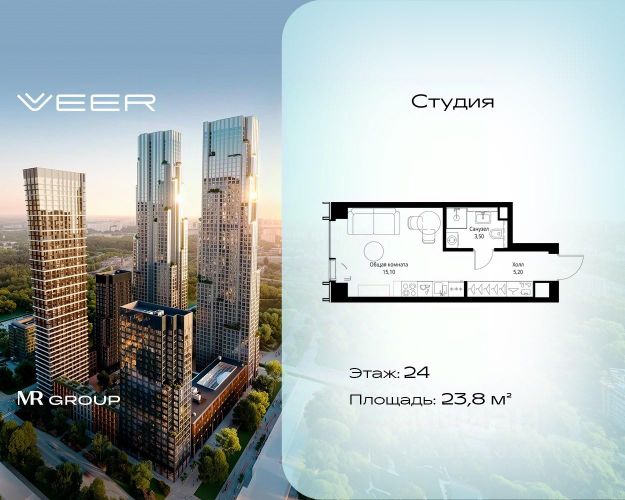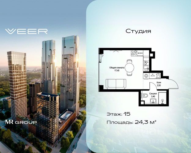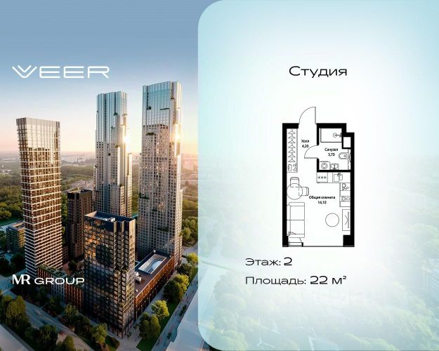 Прямая продажа от застройщика. Продаётся студия общей площадью 22 м² с предчистовой отделкой в ЖК VEER на 2-м этаже 22 этажного дома. Жилой комплекс бизнес-класса VEER от компании MR Group — это футуристичный мультиквартал, расположенный в престижной локации на западе Москвы. Благодаря переменной высоте башен — двух 22-этажных, 46-этажной и двух 59-этажных — возникает динамичность в силуэте комплекса, а его яркий образ вносит разноплановость в архитектурный пейзаж района. Расположение и транспортная доступность: • VEER удобно расположен в непосредственной близости от Кутузовского проспекта, обеспечивая быстрый доступ к центральным районам Москвы • Комплекс находится непосредственно напротив самого большого природного заказника в Москве - парка "Долина реки Сетунь", а за семь минут можно доехать до памятника садово-паркового искусства, Троекуровского леса. • Всего в 15 минутах - центр города, самая престижная бизнес-школа управления России "Сколково", дом творчества "Переделкино". Инфраструктура: Разнообразить свой день резиденты VEER смогут также проводя больше времени на свежем воздухе. Двор разделен на 4 зоны разных эмоций и действий, которые пересечены и соединены веерными прогулочными маршрутами: • Спортивная площадка устроена в глубине "Кленовой рощи" • В "Чайном домике" будет создан навес с утеплением для отдыха в любую погоду • Площадки для детей воплотятся в "Волшебный лес" с цветами, зеркалами и световым дизайном • "Центральная площадь" устроена у водного оазиса живописного пруда. Компания MR Group предлагает своим клиентам специальные условия приобретения квартир в рамках программ ипотечного кредитования от банков-партнеров.