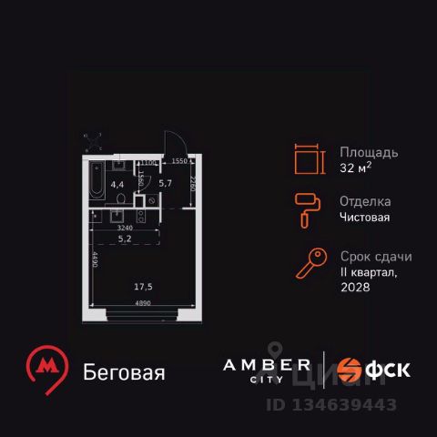 УСПЕЙ ПО СЕМЕЙНОЙ ИПОТЕКЕ! Премиум со скидками до 35%! Прямая продажа от застройщика! Жилой Комплекс премиум-класса. Продаётся квартира-студия номер 438 общей площадью 28.6 кв.м. на 31-м этаже 46 этажного здания. Отделка Whitebox. Цена с учётом скидки. Особенности квартиры: - Линейная планировка - максимальная функциональность и удобство. - Увеличенная ширина окна/окон - больше света и визуального простора. - Гибкая планировка - создайте пространство по своему вкусу. - Можно оборудовать рабочее место - комфорт для работы и учёбы. - Линейная кухня - функциональность и практичность в одном решении. - Проходная кухня-гостиная - идеальное пространство для общения и готовки. - Ниша под шкаф - компактное и удобное место для вещей. Квартира с предчистовой отделкой (White box). Вам не придется заниматься черновыми и трудоёмкими работы, а чистовую отделку и дизайн - сделайте на свой вкус. Информация о комплексе: Amber City - это не просто квартал. Это место, куда ведут все маршруты, где рождается вдохновение работать и творить, где счастлива семья и жизнь кипит 24/7. Модная архитектура, высокотехнологичные решения и самодостаточная инфраструктура приближают Amber City к лучшим районам Гонконга и Нью-Йорка. Потрясающие виды на Москва-Сити и центр позволяют заряжаться их амбициозностью, не подчиняясь суете. Стремящиеся ввысь небоскребы, благоустроенный парк с зонами отдыха для взрослых и детей, а также многочисленные объекты инфраструктуры возводятся в западной части центра Москвы. Транспортная доступность: Квартал отличается исключительной транспортной доступностью: большая часть значимых мест Москвы находится на расстоянии 15-20 минут. Такое расположение позволит полностью погрузиться в деловую и культурную жизнь столицы и тратить на дорогу только необходимый минимум времени. Общественный транспорт: - Станция метро "Беговая" - 5 минут пешком - Станция "Беговая" (МЦД-1) - 5 минут пешком - Ж/д станция Беговая - 12 минут пешком - Остановка "2-й Хорошёвский проезд" - 3 минуты пешком - Станция метро "Звенигородская" (строящаяся) - 10 минут пешком На автомобиле: - Звенигородское шоссе - 3 минуты - TTK - 5 минут - Хорошёвское шоссе - 9 минут - Садовое кольцо - 12 минут - Красная Пресня - 15 минут - Тверская - 20 минут - Серебряный бор - 8 минут - Строгинский затон - 8 минут - Москва-Сити - 10 минут - Кремль - 20 минут - Аэропорт Шереметьево - 40 минут Внутренняя инфраструктура: Умелая работа над ландшафтом позволила правильно зонировать многоуровневое пространство, общей площадью 6 гектаров, открывая разнообразные возможности для резидентов Amber City и их детей. Главной артерией квартала станет собственный зеленый бульвар. Он начнется с площади у входа на территорию и, объединяя все внутренние пространства, пройдет через ключевые площади с арт-объектами, водными зонами и архитектурными формами. Дополнительные пространства для отдыха будут размещены в закрытых зеленых дворах на стилобате. Здесь будут располо Продается квартира-студия рядом с метро Беговая.