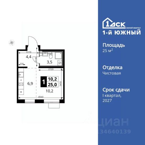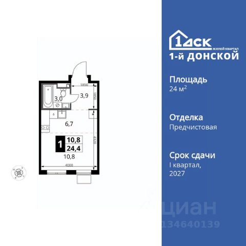 УСПЕЙ ПО СЕМЕЙНОЙ ИПОТЕКЕ БЕЗ НАЦЕНКИ! Квартиры с отделкой от 30 000 рублей в месяц! Прямая продажа от застройщика! Жилой Комплекс класса Комфорт Плюс. Продаётся квартира-студия номер 649 общей площадью 24.4 кв.м. на 20-м этаже 24 этажного здания. Отделка Whitebox. Особенности квартиры: - МЦД-5 в пешей доступности - Квартал с собственной набережной - Свои 2 детских сада и школа - Линейная планировка - максимальная функциональность и удобство. - Ниша под шкаф - компактное и удобное место для вещей. Квартира с предчистовой отделкой (White box). Вам не придется заниматься черновыми и трудоёмкими работы, а чистовую отделку и дизайн - сделайте на свой вкус. Информация о комплексе: Комплекс 1-й Донской расположен в 7 км от МКАД по трассе М-4 Дон. В нем сочетаются все плюсы комфортной городской среды и природного окружения. В проекте достаточно большой процент квартир, выходящих на 2-3 стороны света. Секции-маяки формируют у зданий визуальную L-форму, что придает застройке структуру и ритмику объемов. На ощущение динамики работает и разная этажность зданий. Теплая цветовая палитра фасадов отражает природу Дона. Вечерами дома преображаются благодаря архитектурной подсветке, выгодно выделяясь на городском фоне. Природа оказывает положительное влияние на человека на всех уровнях восприятия: через зрение, запахи, звуки, тактильные ощущения. Неподалеку от ЖК Первый Донской: Ермолинский парк, Видновский лесопарк, Жуковский парк Транспортная доступность: Комплекс удобно расположен в 7 км от МКАД по трассе М-4 Дон (через Видное). Расстояние до Каширского шоссе составляет 12 км. Добраться до метро и центра Москвы позволяет развитая сеть маршрутов общественного наземного транспорта. Действующая ж/д станция Калинина Павелецкого направления в 15-17 минутах ходьбы (МЦД-5 в 2025-2026 гг). Внутренняя инфраструктура: Проект 1-й Донской соседствует с бурно развивающимся районом, основная инфраструктура которого уже сложилась. В строительстве современных жилых комплексов в округе есть свои плюсы: здесь формируется продуманная и комфортная городская среда. Что касается внутренней инфраструктуры, на территории квартала будут расположены собственные муниципальные 2 детских садика и школа, которые помогут совместить приятное с полезным. Территория комплекса пронизана целой сетью живописных пешеходных маршрутов, позволяющих попасть в любой уголок района. Основные пути, как водится, "торговые". Они проходят вдоль магазинов, кафе и других представителей коммерции и отделяются от проезжей части зеленой "фито" - стеной. Среди крупных социальных объектов предусмотрены своя поликлиника и торговый центр с примыкающей площадью для общественных мероприятий. Уют начинается с продуманного подъезда. Сквозные подъезды наполнены светом благодаря сплошному остеклению. Вход в них есть и с улицы, и со двора. Квартира-студия рядом с метро Битца.