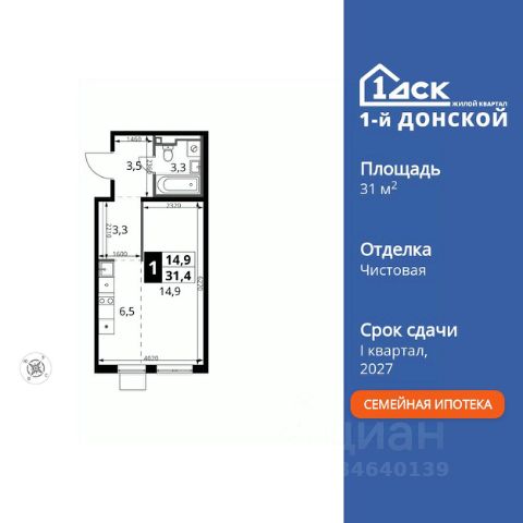 Прямая продажа от застройщика! Жилой Комплекс класса Комфорт Плюс. Продаётся квартира-студия номер 168 общей площадью 31.5 кв.м. на 18-м этаже 24 этажного здания. Чистовая отделка. Особенности квартиры: - МЦД-5 в пешей доступности - Квартал с собственной набережной - Свои 2 детских сада и школа - Организуем показ в удобное для вас время! - Линейная планировка - максимальная функциональность и удобство. - Линейная кухня - функциональность и практичность в одном решении. - Гардеробная - удобство для хранения и организации вещей. - Ниша под шкаф - компактное и удобное место для вещей. Квартира с чистовой отделкой. Раскройте свою индивидуальность в создании своего уникального проекта, а трудоемкий ремонт мы возьмем на себя! Вы идете в ногу со временем и предпочитаете современные, универсальные дизайнерские решения? Или вы любитель строгой лаконичной классики? Тогда наши интерьеры придутся вам по душе! Выбирайте то, что ближе лично Вам и реализуйте свои задумки вместе с нами! Информация о комплексе: ЖК "1-й Донской" в 7 км от МКАД: гармония городского комфорта и природы. Квартиры на 2-3 стороны света, форма секций и разная этажность создают динамичную архитектуру. Тёплая палитра фасадов и подсветка подчеркивают образ. Рядом - Ермолинский парк, Видновский лесопарк и Жуковский парк. Природа воздействует на все уровни восприятия: от видов до звуков и ароматов. Идеальный баланс для жизни в гармонии с окружающей средой. Транспортная доступность: Комплекс удобно расположен в 7 км от МКАД по трассе М-4 Дон (через Видное). Расстояние до Каширского шоссе составляет 12 км. Добраться до метро и центра Москвы позволяет развитая сеть маршрутов общественного наземного транспорта. Действующая ж/д станция Калинина Павелецкого направления в 15-17 минутах ходьбы (МЦД-5 в 2025-2026 гг). Внутренняя инфраструктура: "1-й Донской": продуманная среда в развивающемся районе. На территории - муниципальные школа и 2 детских сада, поликлиника, торговый центр с площадью для мероприятий. Сеть пешеходных маршрутов ведёт к магазинам и кафе, отделённым от дорог зелёными фито-стенами. Сквозные подъезды с панорамным остеклением и входами с улицы и двора наполнены светом. Всё для комфортной жизни в шаговой доступности, от повседневных нужд до общественных пространств. Квартира с чистовой отделкой: ваш стиль без ремонта. Выбирайте современный дизайн или классику - мы воплотим ваши идеи. Готовые интерьеры для уникального дома.