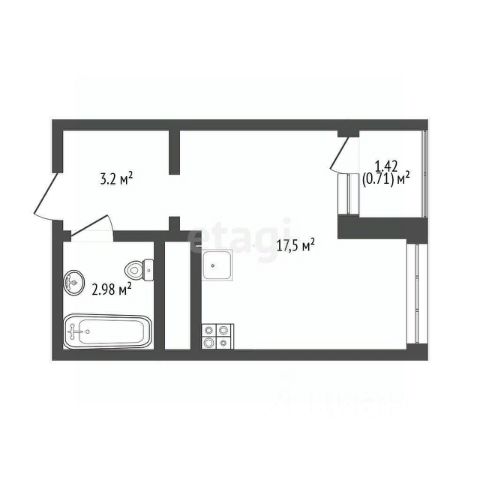 Площадь 24.5 кв.м., лоджия 1.5 кв.м.