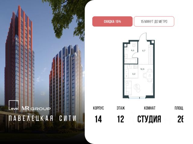 В Даниловском районе столицы (ЮАО) продаётся студия площадью 27.00 кв.м без отделки. Квартира расположена на 6 этаже 27-этажного корпуса 'Горизонт' в жилом комплексе бизнес-класса Павелецкая Сити. Высота потолков 3.00м. Престижная локация "Павелецкая Сити" - жилой комплекс бизнес-класса, расположенный в престижном Даниловском районе Москвы, на границе с ЦАО. Проект находится в историческом центре города в окружении парков, Москвы-реки и сформированной инфраструктуры. В пределах 20 минут пешком есть 3 станции метро, а в 5 минутах езды на авто - ТТК и Садовое кольцо. - 15 мин. пешком до метро "Павелецкая"; - 20 мин. пешком до станций "Тульская" и "Серпуховская"; - 8 мин. на авто до Кремля; - 10 мин. на авто до парка Горького и парка "Зарядье"; - 20 мин. на авто до башен "Москва-Сити". Авторская архитектура Архитектурная концепция разработана бюро СПИЧ по индивидуальному проекту. Облик корпусов I и II очередей отсылает к стилистике архитектуры классического Нью-Йорка и золотой эпохи Голливуда. Корпуса IV очереди вдохновлён эстетикой ар-деко в её современном переосмыслении. Благодаря линейному расположению корпусов из большинства квартир будут открываться потрясающие виды на исторический центр города и Москву-реку. Дизайнерские лобби Изысканные интерьеры лобби жилого комплекса отсылают к классическим фильмам золотой эпохи Голливуда. Классика в "Павелецкая Сити" - не имитация, а современное осмысление лучшего в этом стиле. В каждом вестибюле оборудованы стойки ресепшен, комфортные зоны ожидания, гостевые санузлы, мойки для лап животных, колясочные. В корпусах по 3-4 лифта, включая сервисный, с прямым доступом в паркинг. Площадь лобби - от 47,9 до 114,9 кв. м, высота потолков - до 5,46 м. Благоустройство и инфраструктура Для создания благоустройства было приглашено 2 ведущих бюро - ADM и GAFA. Разноуровневое пространство вмещает всё необходимое для качественного досуга: игровые площадки для детей всех возрастов, тропы здоровья для пеших прогулок, крытые аллеи с качелями, места для работы на свежем воздухе, многофункциональные спортивные площадки - воркаут-зоны, столы для пинг-понга, зоны командных игр. Общая площадь закрытого двора - 4,63 га. Комфорт - это когда рядом всё, что нужно для жизни. На первых этажах и в стилобатной части корпусов "Павелецкая Сити" размещены 85 коммерческих помещений, где откроются супермаркеты, кафе, пекарни, аптеки и другие службы сервиса. В составе проекта также предусмотрены собственный фитнес-клуб и развивающий центр Letovo Kids, а также школа на 720 мест и детский сад на 175 мест. Технологии и безопасность - Wi-Fi в лобби и на придомовой территории; - Автоматизированная система контроля и учета ресурсов; - Круглосуточное видеонаблюдение и охрана; - Круглосуточная связь с охраной через приложение, телефон или кол-центр; - Контроль доступа по биометрической системе Face-ID; - Усиленный сотовый сигнал в лифтах и паркинге; - Распознавание номеров автомобилей при въезде/выезде в/из паркинга. Купить квартиру-студию рядом с метро Добрынинская.