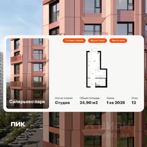 Продаётся квартира-студия площадью 29,7 кв.м на 5 этаже 16 этажного дома (Корпус 82.2, Секция 2) проекта ПИК Саларьево парк. Светлый просторный подъезд на уровне земли, функциональная планировка, большие окна, c отделкой. Жилой район "Саларьево парк" расположен в Новой Москве, в четырёх километрах от МКАД по Киевскому шоссе. Две станции метро: "Саларьево" и "Филатов луг", — находятся в пешей доступности от проекта. Дойти до них можно за 510 минут. В квартале уже создана качественная среда, где есть абсолютно всё для полноценной жизни, работы и отдыха. Благодаря удобному расположению проекта всё важное будет рядом: детские сады, школы, кафе и рестораны, шопинг в торговых центрах, фитнес и даже аэропорт. Все корпуса в квартале гармонично сочетаются, образуя единую городскую среду. Между собой их объединяет невысокая этажность и натуральная цветовая гамма. Здесь приятно гулять и проводить время на улице всей семьёй. В "Саларьево парке" создана уникальная образовательная среда, включающая в себя шесть школ, рассчитанных на 6 250 учеников. Две из них уже открыты, их посещает 2 300 детей. Также на территории "Саларьево парка" находится 12 детских садов, один из которых с бассейном. Сейчас уже открыты 7 садов. В "Саларьево парке" открыта уникальная игровая площадка — PlayHub "Оригами". Здесь есть ручей, горка-труба и рельефные холмы. Взрослые смогут отдохнуть в уютном кафе, пока дети играют. Также на территории проекта есть SportHub — большая спортивная зона, разделённая по интересам и возрастам. Здесь можно заниматься разными видами спорта: футболом, баскетболом, волейболом и стритболом. Зимой центральную часть площадки превращают в каток. Во дворах-парках жилого квартала есть места для отдыха, детские и спортивные площадки. На первых этажах домов расположены магазины, кафе и полезные сервисы. Также вблизи проекта есть несколько масштабных торговых центров. До ТЦ "Саларис" пять минут пешком, до "Рио", Metro Cash & Carry и "Леруа Мерлен" — пять минут на автомобиле. Артикул 1032312 (Застройщик ООО "Специализированный Застройщик "Тирон") Квартира-студия рядом с метро Филатов Луг.