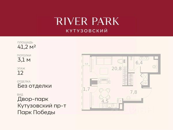Продается студия площадью 39.3 кв.м. на 3-м этаже в жилом комплексе премиум-класса River Park Кутузовский в Башне Amber Tower О жилом комплексе. Премиальный жилой комплекс River Park Кутузовский строится в одном из самых престижных районов столицы Дорогомилово, на берегу Москвы-реки. Яркий проект в стиле эко-футуризма станет самым масштабным и самым высотным ЖК в локации Кутузовского проспекта. В проекте будет впервые воплощена концепция Family Premium. Расположение и Транспортная доступность: - На берегу Москвы-реки, напротив Москва-Сити - 600 метров до Кутузовского проспекта - Удобный съезд с ТТК - Прямой выезд на МКАД по Северному дублеру Кутузовского проспекта. - В пешей доступности 3 станции метро: Фили, Парк Победы, Кутузовская, а также станция МЦД Фили. Архитектура от именитого бюро ADM отличается уникальной пластикой фасадов - башни словно парят в воздухе, играя гранями как драгоценные камни. Жилой комплекс состоит из 5-ти небоскребов с home park на закрытой территории и внешней торговой галереей с открытым доступом. В закрытом внутреннем дворе уникальная по насыщенности клубная инфраструктура - 5 Towers Club только для жителей: - Многофункциональная спортивная площадка (баскетбол, футбол, воллейбол, большой теннис) - Детский игровой клуб NEMO - Life Rooms с караоке, барной стойкой и meeting room - Music salon - Gedonist Club с бильярдной - Beauty station - Гольф-симулятор Впервые в Москве lounge зоны на крыше небоскребов, только для жителей: - Всесезонные беседки иглу - Джакузи - Барная стойка - Грили - Площадка для занятий йогой - Самые высоки качели на крыше в России - Видовые площадки Благоустройство комплекса занимает 3 гектара и разработано мировым экспертом по городским парковым ландшафтам - голландским бюро WEST8. Концепция проекта дать жителям отдохнуть от городского ритма, расслабиться среди природы и натуральных материалов. В home park будут высажены многолетние деревья по принципу no allergy. - Зеркальный пруд с арт-объектом - Две детские площадки - Work out с навесом - Цветущий сад - Party lounge - Видовая зона отдыха с очагом - Солярий На территории жилого комплекса планируется строительство крупного образовательного центра: детский сад на 200 мест и школа на 460 мест. Купить квартиру-студию рядом с метро Фили.