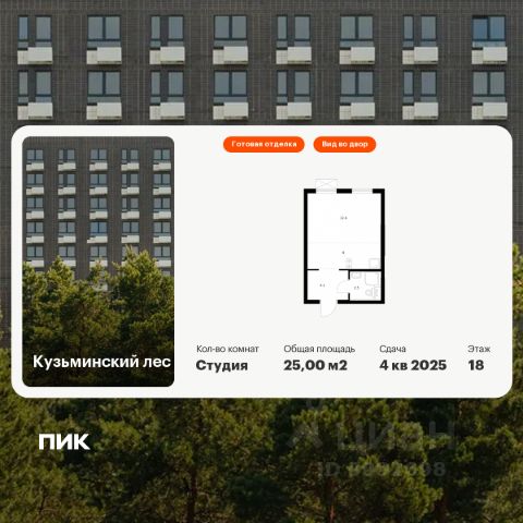 Продаётся квартира-студия площадью 25 кв.м на 18 этаже 25 этажного дома (Корпус 9, Секция 1) проекта ПИК Кузьминский лес. Светлый просторный подъезд на уровне земли, функциональная планировка, большие окна, c отделкой. Жилой квартал "Кузьминский лес" находится в Московской области, в городе Котельники. Отсюда за 18 минут можно дойти до метро "Котельники", а за 5 минут — доехать на машине до МКАД. В проекте — жилые дома с уютными дворами, школа, детский сад, подземные и гостевые паркинги. Вокруг — развитый район с детскими садами, школами и поликлиниками. Рядом есть стадион, "МЕГА Белая Дача" и гипермаркеты Selgros, Castorama и Real. Отдохнуть от городской жизни можно в Кузьминском парке и усадьбе "Белая Дача", которые совсем недалеко от "Кузьминского леса". Артикул 582194 (Застройщик АО "Компания АТОЛ") Продается квартира-студия рядом с метро Котельники.