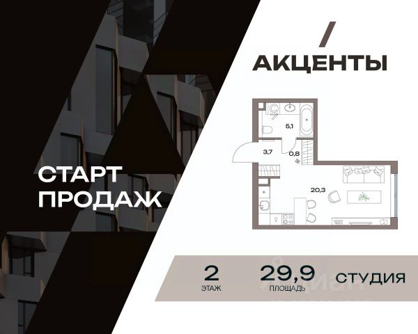 Смарт-студия для молодых специалистов или тех, кто ценит личное пространство и независимость. -В квартире предусмотрено классическое остекление -Удобная ниша для хранения вещей в коридоре -Кухня-гостиная с грамотно зонированной кухней и зоной отдыха Смарт-студия подойдет тем, кто ищет функциональное и доступное жилье. Молодой район для жизни "Акценты" в классе бизнес-лайт — точка роста на севере Москвы. Он предлагает элегантные и строгие фасадные решения, авторский ландшафтный дизайн, а также функциональные и доступные по цене планировки. Проект находится в семи минутах пешком от станции метро "Лианозово" и одноименной МЦД-1. Добраться до МКАД можно будет за 10 минут на авто, а дорога до центра займет около 20 минут. Жилой комплекс, расположенный в районе Восточного Дегунино, предлагает развитую инфраструктуру для тех, кто ценит выбор. Он имеет удобный доступ не только к транспорту, но и к паркам, школам, садам, больницам и другим социальным объектам. В пешей доступности находятся 4 поликлиники, 5 школ, 6 детских садов, 3 бассейна и баскетбольная академия. Еще рядом есть несколько лесопарков: "Лианозово" с аттракционами и спортивными площадками для тенниса, волейбола и баскетбола, "Останкино" с конным клубом, прудом и пейнтбол-площадками. А "Северные Дубки" — это завораживающее пространство для прогулок под кронами вековых дубов, берез и лип. Кроме того, в районе не будет скучно и юным жителям. Можно оттачивать трюки в скейтпарке "Союз". Ловким и прыгучим советуем записаться в акробатический центр "Белка". Продам квартиру-студию рядом с метро Лианозово.