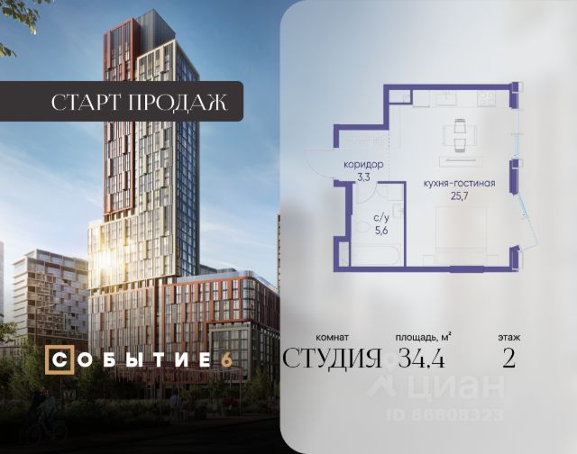 Продаётся квартира-студия от застройщика: общая площадь 32.30 м², жилая 19.50 м², кухня 5.00 м², 2-й этаж, жилой квартал "Событие-6", корпус 2 (секция 4) Срок сдачи: 1 квартал 2029 года. Позвоните сейчас и забронируйте квартиру! Продуманный до деталей. Созданный для жизни, полной счастливых событий. Парк-квартал СОБЫТИЕ - это жизнь класса премиум в престижном районе на Мосфильмовской улице. Архитектура мирового уровня. Выигрышное расположение на границе природного комплекса "Долина реки Раменки". Все для комфортной жизни и досуга: от детсадов и школ до ресторанов и медцентров. И новая точка притяжения - уже готовый парк "Событие" с пространствами активности для всех возрастов и интересов. Особенности квартала: • "Парящие" мосты и парк под облаками - уникальный дом с самыми завораживающими видами из окон "в пол" • Собственный парк - сразу за порогом! • Архитектурная концепция от известных международных бюро LDA Design и UHA London • Инфраструктура "тапочной доступности": в кафе, школу, магазин - за пару минут! • Внутренний двор - настоящее продолжение вашего дома: закрытая охраняемая территория без машин, развивающие детские площадки, воркауты-зоны для тех, кто хочет быть в форме, площади для праздников и посиделок с соседями. Продам квартиру-студию рядом с метро Мичуринский проспект.