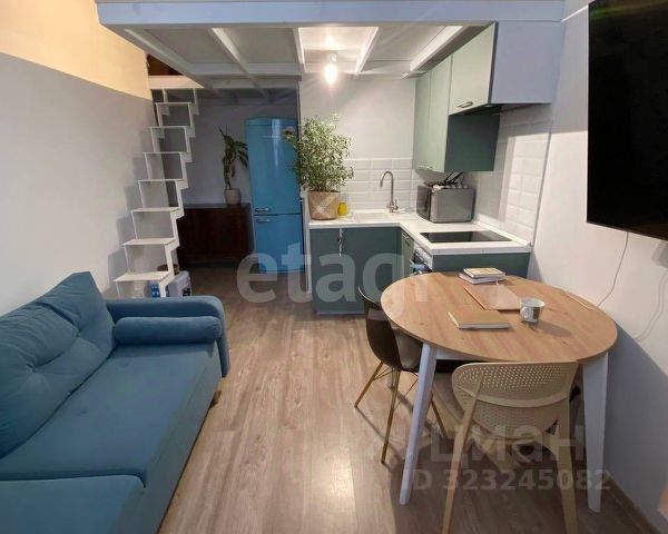 - В двух уровнях. Общая площадь помещения 35 м с учетом антресоли, по пoлу 19 м.