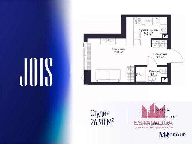 10 минут от Москва-Сити В продаже квартира площадью 23.34 м² с предчистовой отделкой на 16 этаже 55 этажного дома. Квартира расположена в корпусе Anna. JOIS это премиальный жилой комплекс от девелопера MR Group в районе Хорошёво-Мнёвники. Он включает несколько эффектных небоскрёбов высотой 47-56 этажей, эксклюзивные форматы квартир с панорамным остеклением, подземный двухуровневый паркинг на 239 м/м, собственную приватную инфраструктуру, закрытый ландшафтный парк 2,3 Га с функциональным зонированием и охраняемой территорией. Над проектом работали лучшие команды международных агентств с многолетним опытом: Genpro, S&P, iLight International и другие. Расположение Пешком: - 5 мин. ст. МЦК "Хорошёво"; - 15 мин. ст. м. "Народное ополчение"; - 10 мин. ст. метро "Звенигородская" с 2027 года; - 20 мин. причал "Карамышевский". На автомобиле: - 3 мин. до Звенигородского шоссе; - 5 мин. до ТТК: - 8 мин. до Серебряного бора и Строгинского затона - 10 мин. до ММДЦ "Москва-Сити"; - 40 мин. до аэропорта "Шереметьево"; Благоустройство - собственный ландшафтный парк 2,3 Га; - парк скульптур от Cosmoscow; - консьерж-сервис 24/7; - сервисный лифт и вход; - игровые и спортивные площадки; - коворкинг с библиотекой; - лаунж-зона с камином; - игровые комнаты для детей и клуб для подростков с оборудованием для видеоигр; - спортивная студия для индивидуальных тренировок; - гостиная с мини-кухней; - зоны для выгула собак; - подогрев пешеходных дорожек в зимний период; - автополив зелёных насаждений; - премиальные рестораны, кафе, химчистки, аптеки и супермаркеты. Окружение - 4 парка: Покровское-Стрешнево, Филёвский парк, Серебряный бор и Берёзовая роща; - 15 общеобразовательных заведений, в том числе две школы из самых лучших в Москве: государственная школа "Интеграл" и частная "Хорошкола"; - спортивное сооружение "ВЭБ Арена", домашний стадион ФК ЦСКА; - крупнейший в Европе торгово-развлекательный центр "Авиапарк".