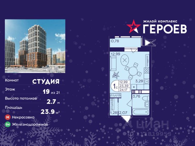 Продаётся студия 27.20 кв. м. в жилом комплексе "Героев" в Балашихе, Железнодорожный. Квартира расположена на 13 этаже 411 корпуса. В наличии квартиры с отделкой. Всего 40 минут до центра Москвы. При покупке квартиры в сданном доме ключи выдаются сразу! Жилой квартал "Героев" - это уютный проект для семей с детьми. В квартале созданы все условия для досуга всех возрастов: игровые и спортивные площадки, места для отдыха и прогулочные зоны. За 15 минут можно дойти от дома до Ольгинского лесопарка, популярного места для отдыха на свежем воздухе. На территории жилого комплекса уже открыт детский сад на 250 мест и началось строительство еще одного - для 220 малышей, а также школы для 1320 учеников. Рядом работают магазины, кафе, супермаркеты, пункты выдачи. Преимущества: • В уютных светлых квартирах с просторными кухнями-гостиными удобно встречать гостей и проводить время наедине друг с другом. • Благодаря увеличенному остеклению в комнатах много света. • Квартиры продаются с отделкой, можно заселяться сразу после получения ключей. Продается квартира-студия рядом с метро Некрасовка.