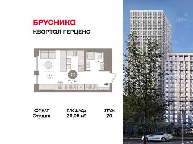 Студия в Квартале Герцена. Особенности планировки: гардеробная, ипотека от 2,98% на 1 год, предчистовая отделка, терраса. Квартиру можно купить онлайн. В квартире выполнена отделка "под чистовую". Установлены окна с двойным стеклопакетом, радиаторы с терморегуляторами. На полу цементно-песчаная стяжка. В квартиры заведены кабели для интернета и ТВ. Входная сейф-дверь не требует замены. Организован поквартирный учёт энергоресурсов (водоснабжение, отопление, электричество). Квартал "Герцена" расположен в Бирюлёве Восточном — районе на юге Москвы. Дорога до ТТК займет всего полчаса на автомобиле, до станции метро и ж/д станции "Царицыно" — 13 минут, а до автовокзала "Южные ворота" — 20 минут. До автобусных остановок можно дойти пешком. В 2027-2028 году откроется новая станция метро "Лебедянская", дорога до неё займет всего 18 минут. Общая площадь "Квартала Герцена" составляет 27,3 га. Дома состоят из разноуровневых секций высотой от 6 до 55 этажей с видовыми террасами и балконами. На территории квартала будет построена поликлиника, детский сад на 350 мест и воспитательно-образовательный комплекс на 1075 мест, а также рестораны, клиники, магазины и салоны красоты. Объявление от застройщика. Ипотека, материнский капитал. Обмен — один из способов покупки. Обмен подойдёт, если вы хотите быстро поменять старую квартиру на новую. Получить ипотеку или рассрочку, а также обменять квартиру можно онлайн. Запишитесь на онлайн-презентацию по телефону или на сайте. квартиры в нашей базе: ГРЦ01.1-Ж5.20.9.