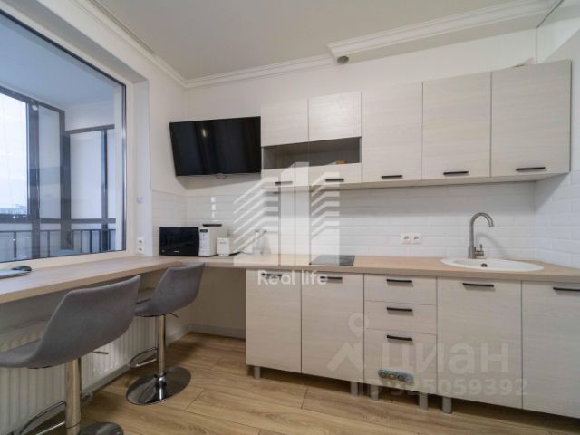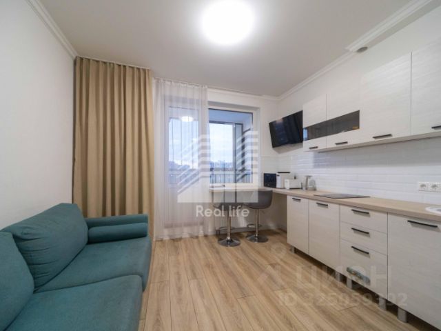 Балкон, панорамное остекление от застройщика. Потолок и левая стена обшиты вагонкой, покрашена защитным покрытием, сделаны электро розетки, освещение, провод под спутниковую тарелку.