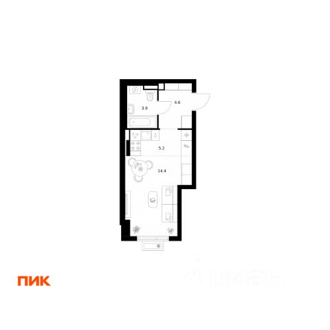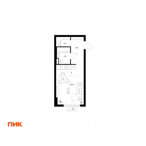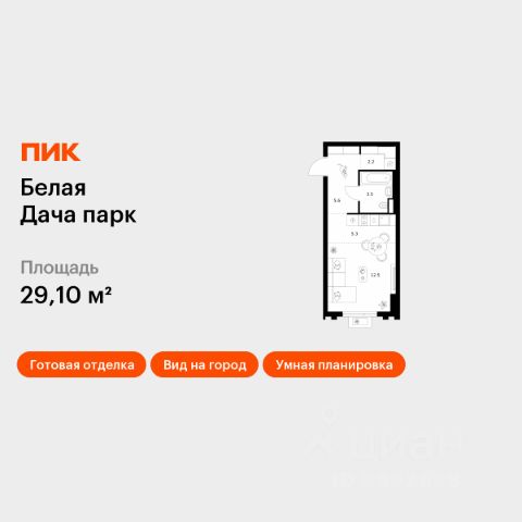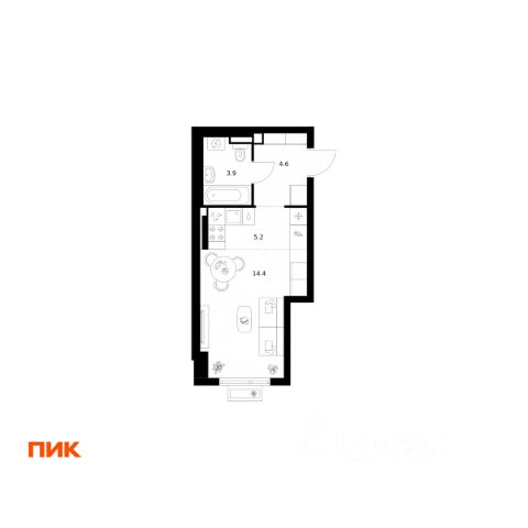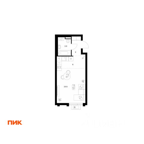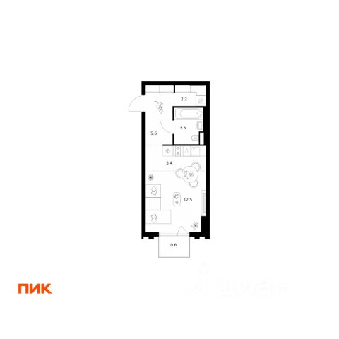 Помещение 19,1 кв.м, расположено на втором этаже, высокие потолки 3,2 м., студия с ремонтом, санузел выложен кафельной плиткой, оборудован: унитаз, раковина, поддон с душевой системой.