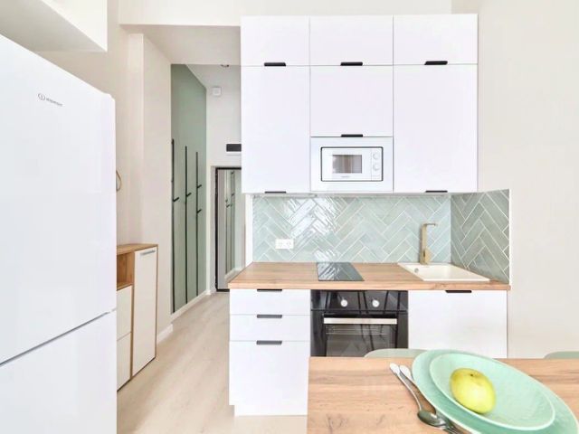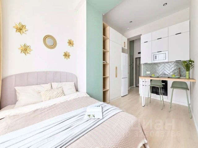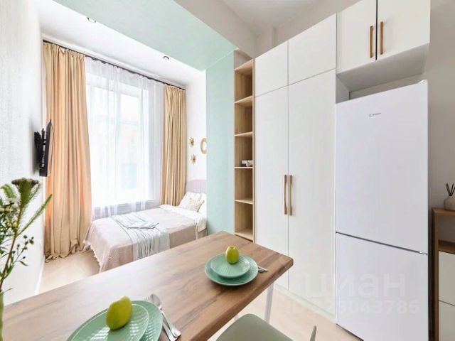 Здесь установлены новые надежные коммуникации и железобетонные перекрытия. В студии выполнена евроотделка, что избавит вас от лишних за от с обустройством помещения. Тут уже есть качественная металлическая дверь c внешней вставкой и зеркальной панелью, натяжные потолки, радиаторы. Санузел отделан под ключ, внутри есть унитаз, раковина, смеситель, поддон для душевой кабины и душевой гарнитур.