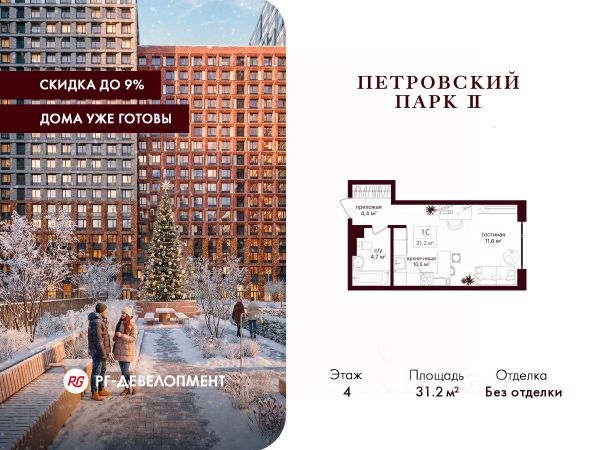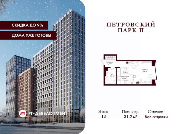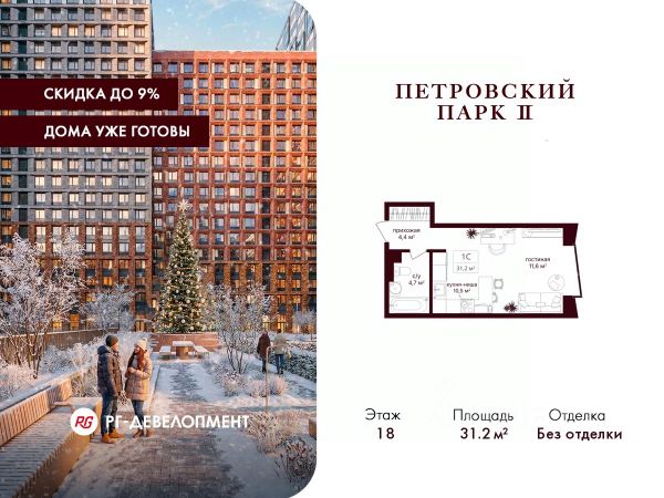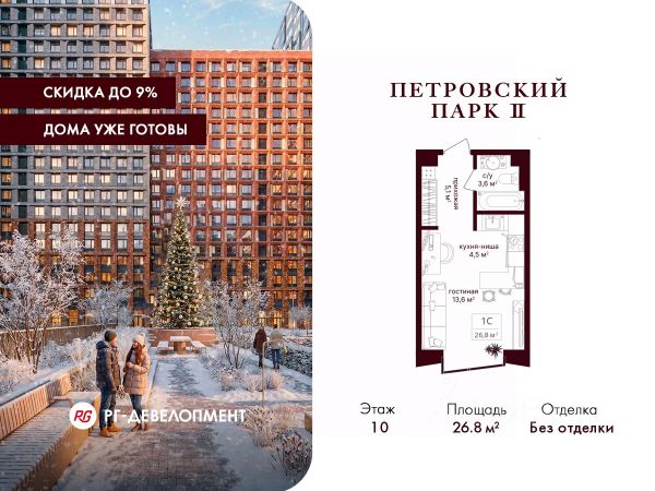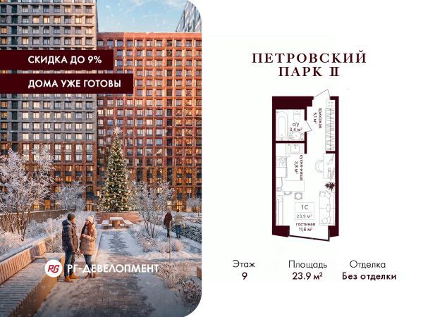 Представляем готовую студию в ЖК "Искра-Парк", площадью 21,5 кв. м., 8/17-этажного монолитного здания, рядом с метро Динамо и Петровский Парк.